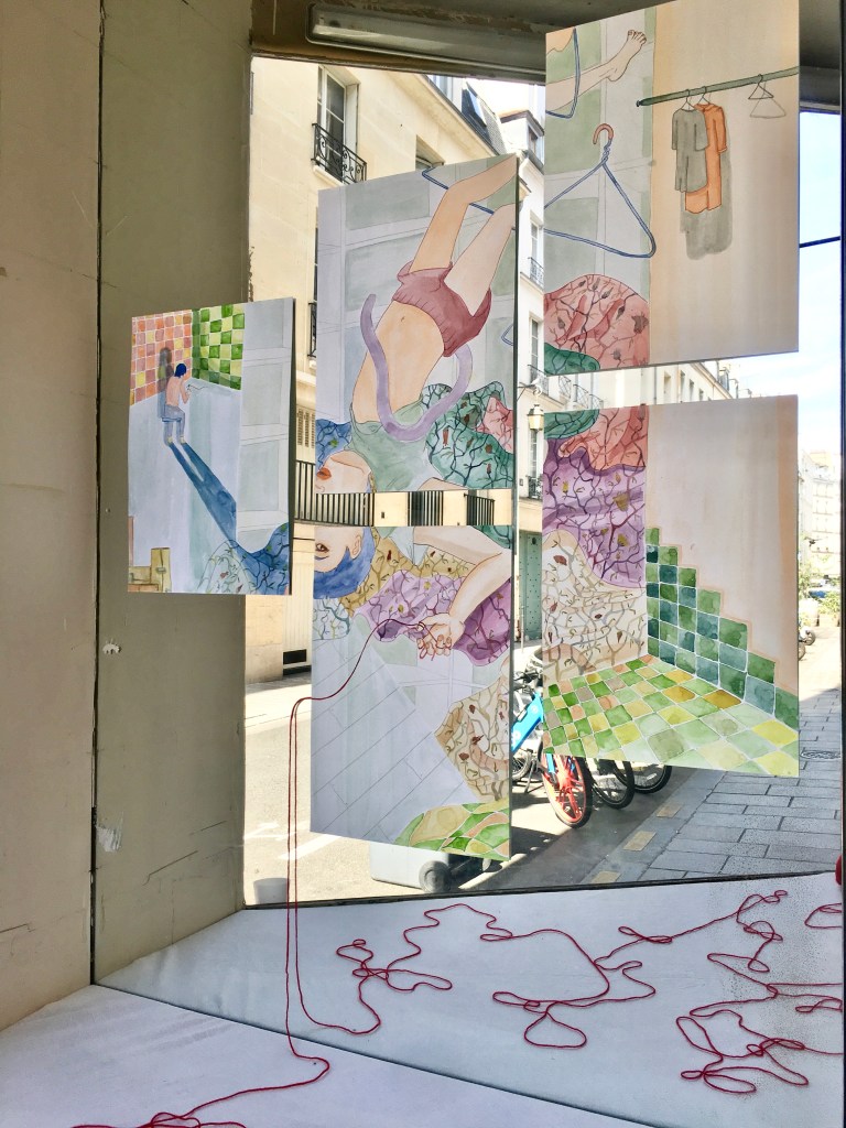 La mémoire personnelle des artistes et la mémoire des peuples auxquels ils sont reliés font naître un ensemble d’œuvres d’une grande force plastique et poétique. Sept œuvres au total, pour beaucoup inédites, sont accueillies au sein d’un vieil atelier de couture, plein de souvenirs et de savoir-faire, installé dans le Marais depuis plus de quinze ans. Motifs, liens, trous et déchirures des œuvres révèlent leurs formes et leurs sens tout en délicatesse dans ce lieu, où s’ajustent et se réparent d’ordinaire les vêtements auxquels on tient.